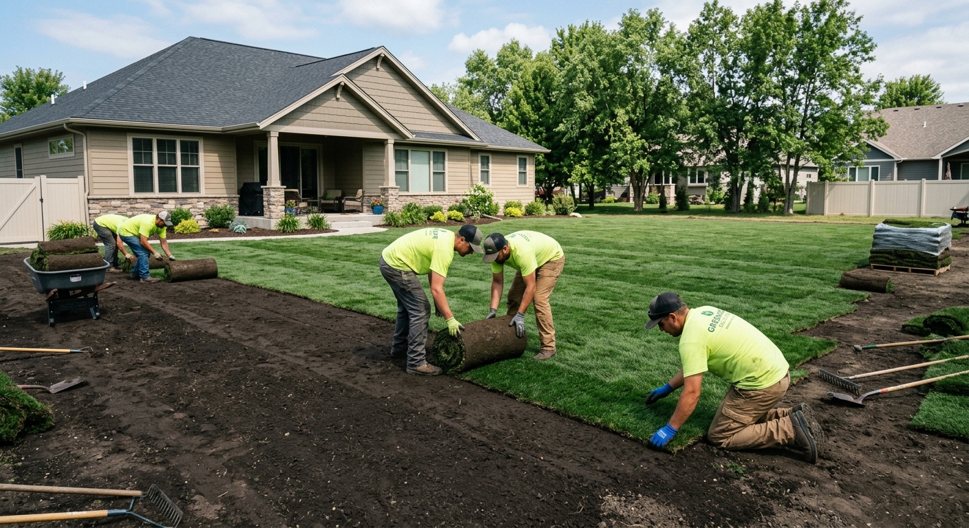 Préparation du sol, nivelage, pose de gazon naturel de qualité supérieure. Résultat immédiat. Garantie d'enracinement incluse.